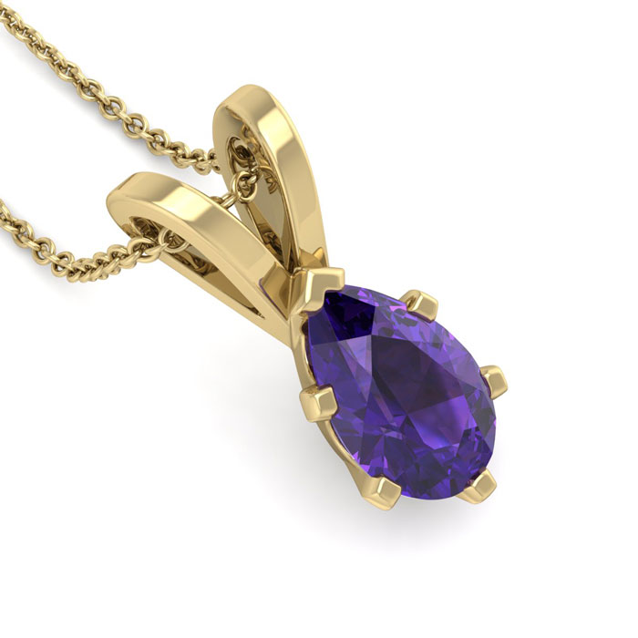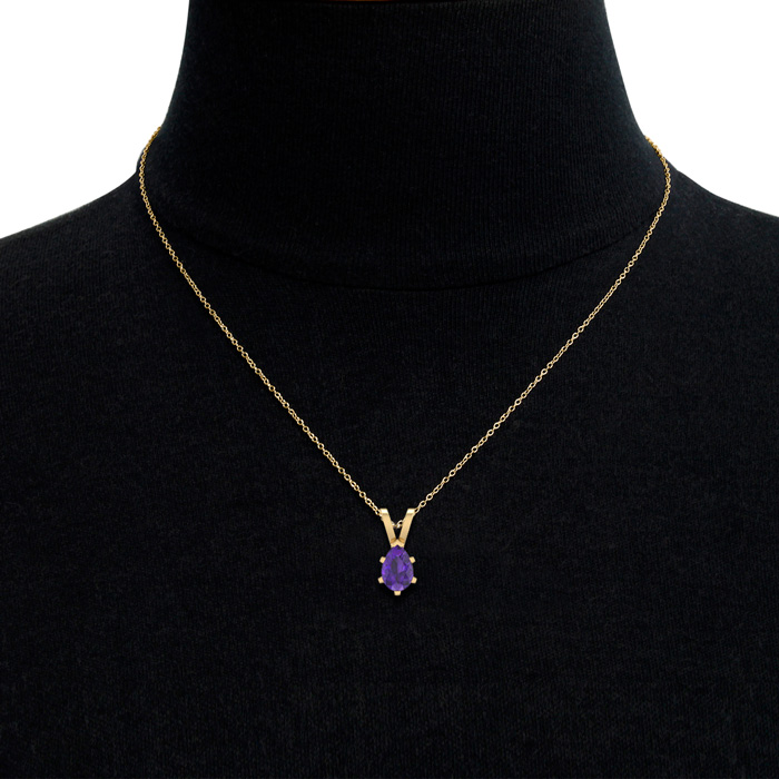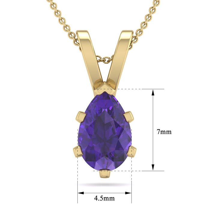 3/4 Carat Pear Shape Amethyst Necklace In 14K Yellow Gold Over Sterling Silver, 18 Inches