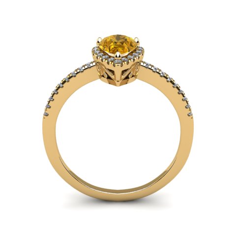 3/4 Carat Pear Shape Citrine and Halo Diamond Ring In 14 Karat Yellow Gold
