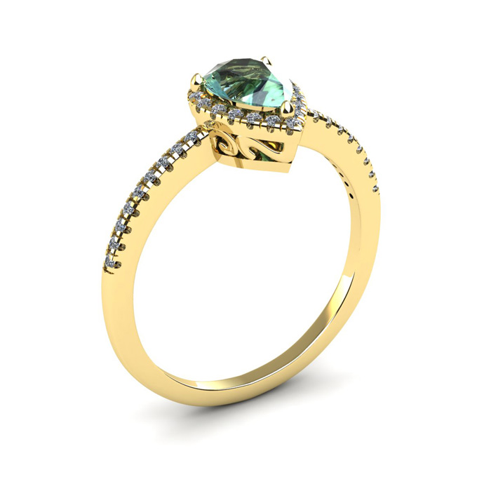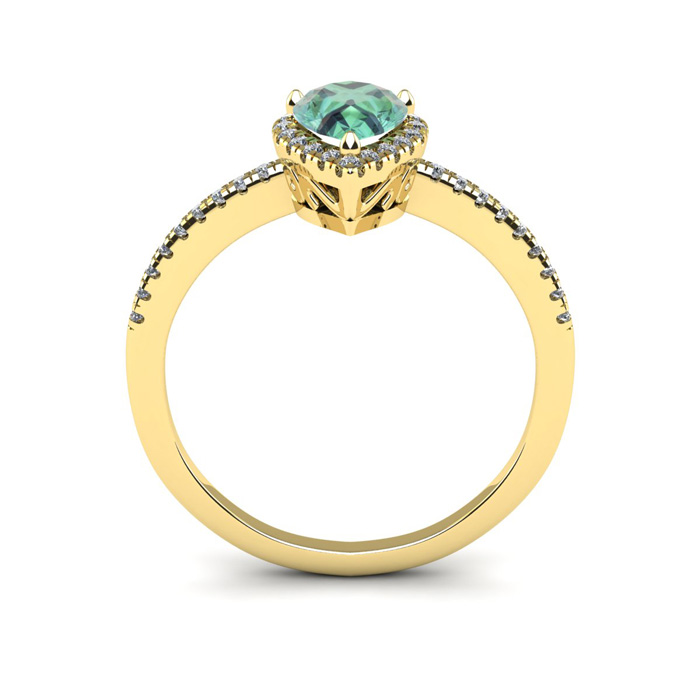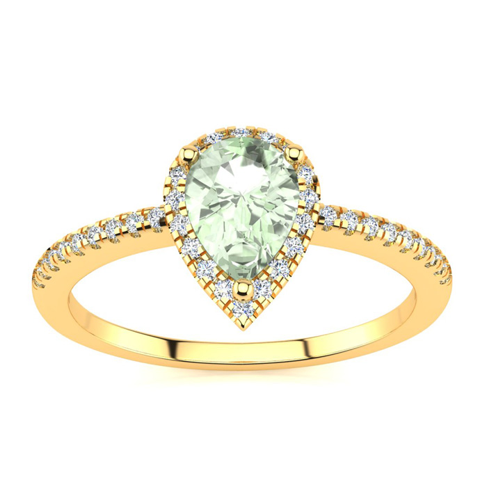 3/4 Carat Pear Shape Green Amethyst and Halo Diamond Ring In 14 Karat Yellow Gold