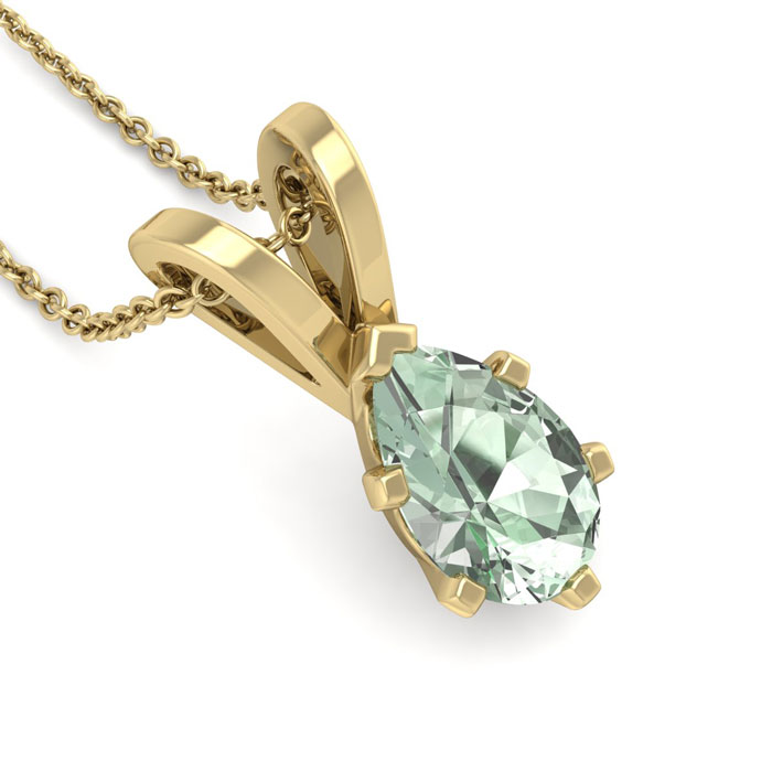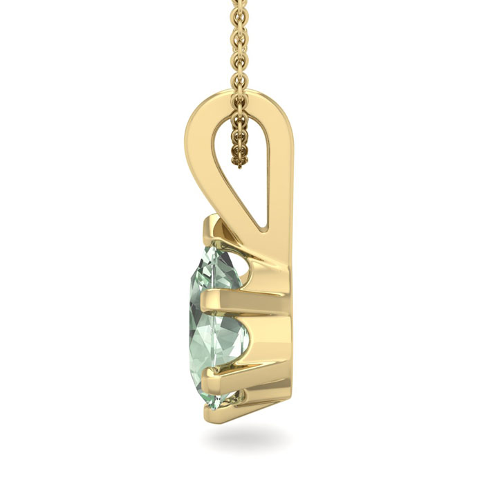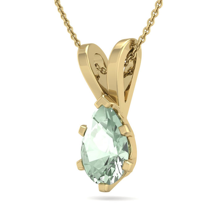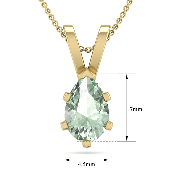 3/4 Carat Pear Shape Green Amethyst Necklace In 14K Yellow Gold Over Sterling Silver, 18 Inches