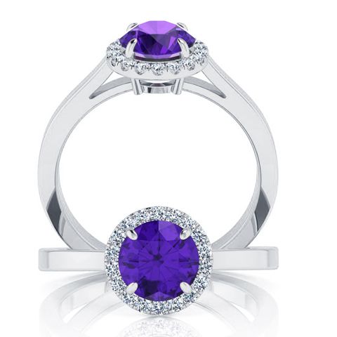3/4 Carat Round Shape Amethyst and Halo Diamond Ring In 14 Karat White Gold