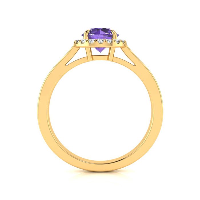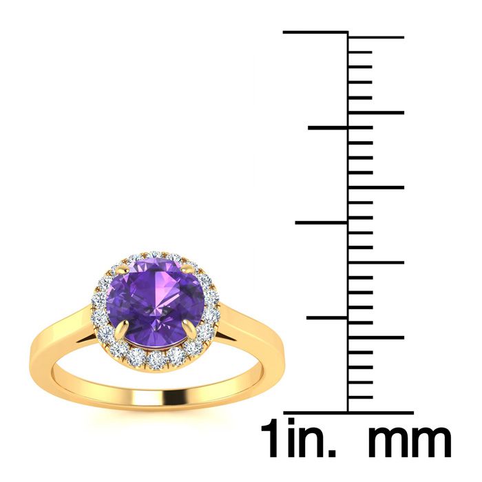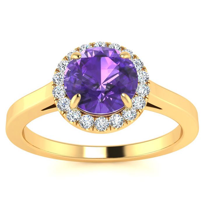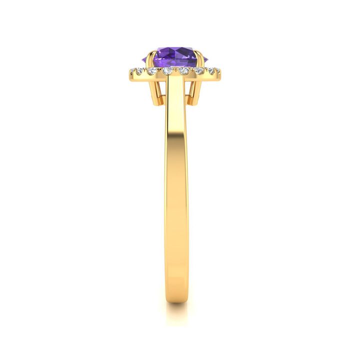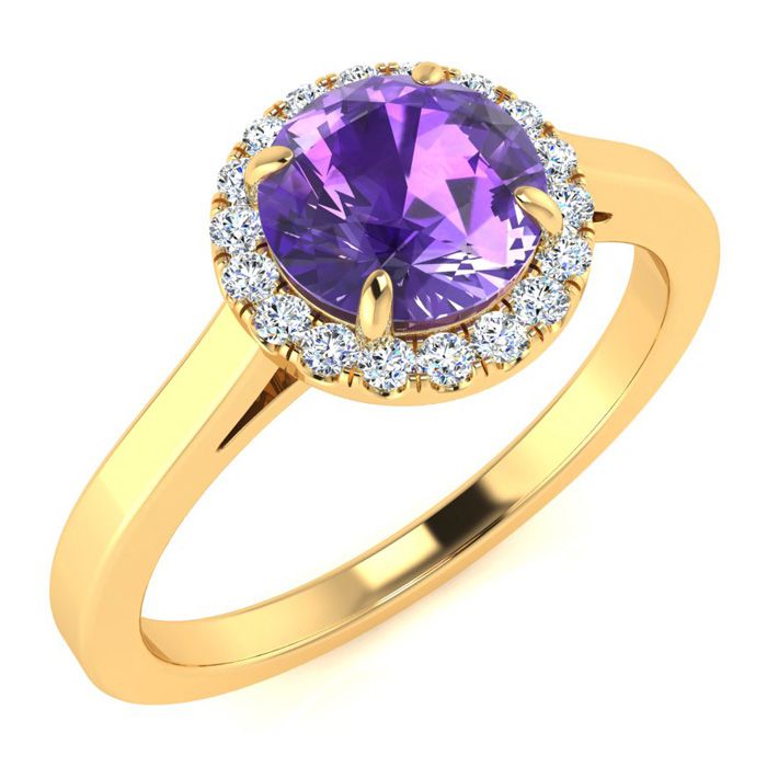 3/4 Carat Round Shape Amethyst and Halo Diamond Ring In 14 Karat Yellow Gold
