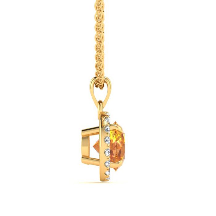 3/4 Carat Round Shape Citrine and Halo Diamond Necklace In 14 Karat Yellow Gold