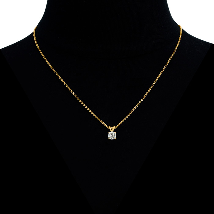 AMAZING DEAL ON A SINGLE 3/4 CARAT DIAMOND SOLITAIRE NECKLACE! NOT THE GREATEST DIAMOND IN THE WORLD, BUT NOT THE WORST EITHER. GREAT FOR THE MONEY. 3/4ct 14k White Gold Diamond Pendant - Fantastic 3/4ct Yellow Gold Round Diamond Solitaire Pendant. Diamond is E-F Colorless, I2 genuine natural, clarity enhanced. It even comes with a complementary 18-inch chain.