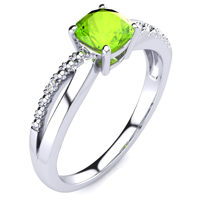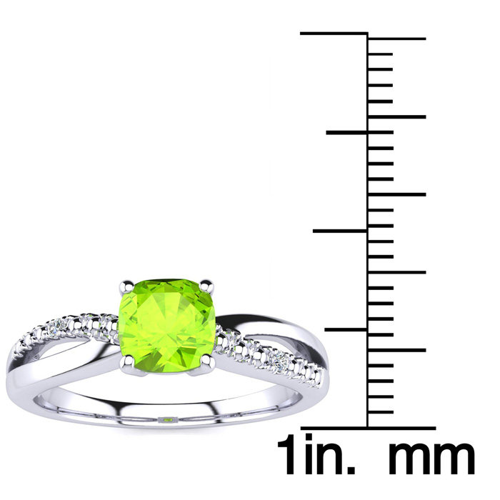 3/4ct Cushion Cut Peridot and Diamond Ring In 10K White Gold