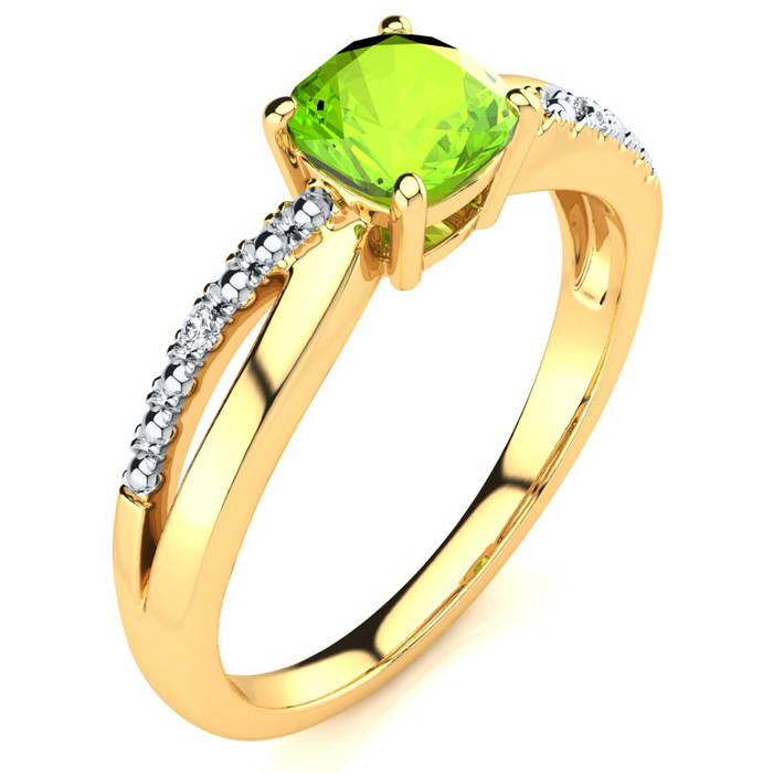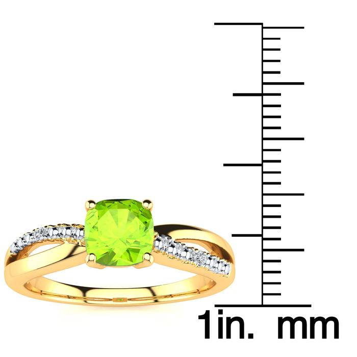 3/4ct Cushion Cut Peridot and Diamond Ring In 10K Yellow Gold