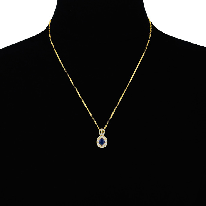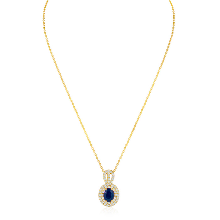 3.50 Carat Fine Quality Sapphire And Diamond Necklace In 14K Yellow Gold