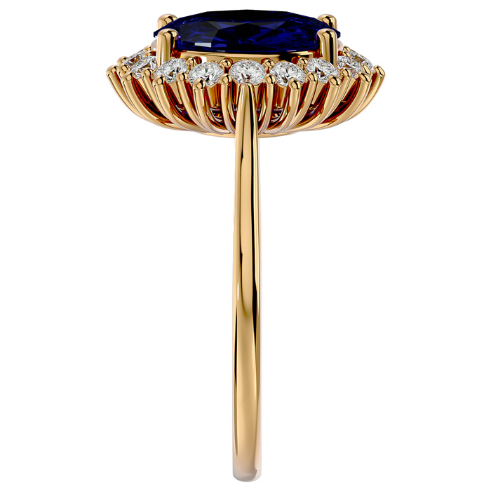 3.60 Carat Oval Shape Sapphire and Halo Diamond Ring In 14 Karat Yellow Gold