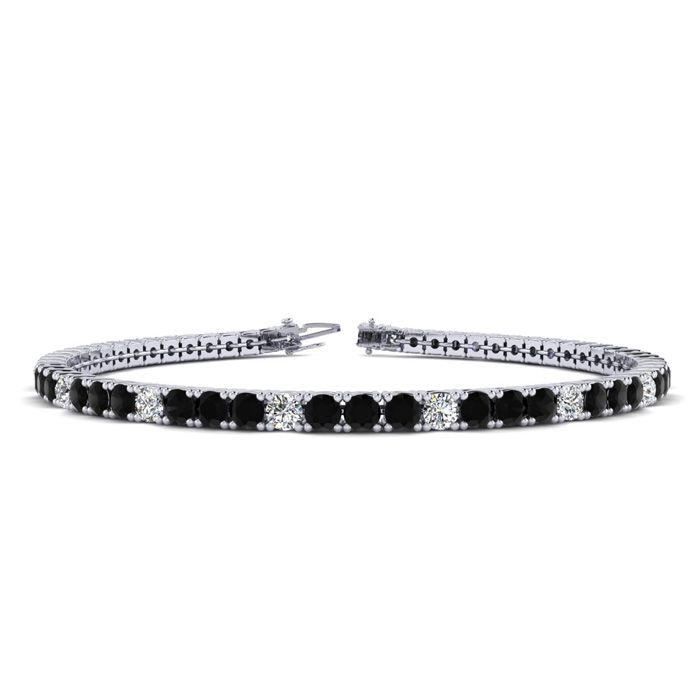 3 Carat Black And White Diamond Tennis Bracelet In 14 Karat White Gold, 8 Inches