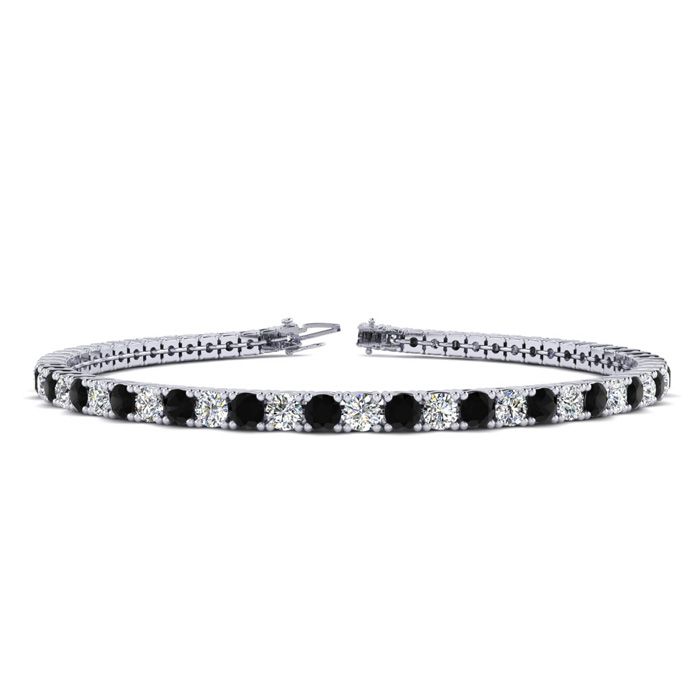 3 Carat Black And White Diamond Tennis Bracelet In 14 Karat White Gold, 8 Inches