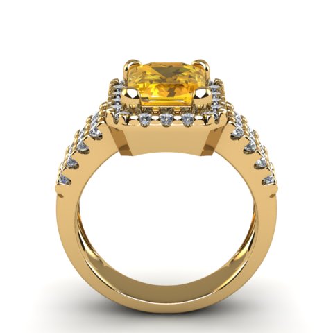 3 Carat Citrine and Halo Diamond Ring In 14 Karat Yellow Gold