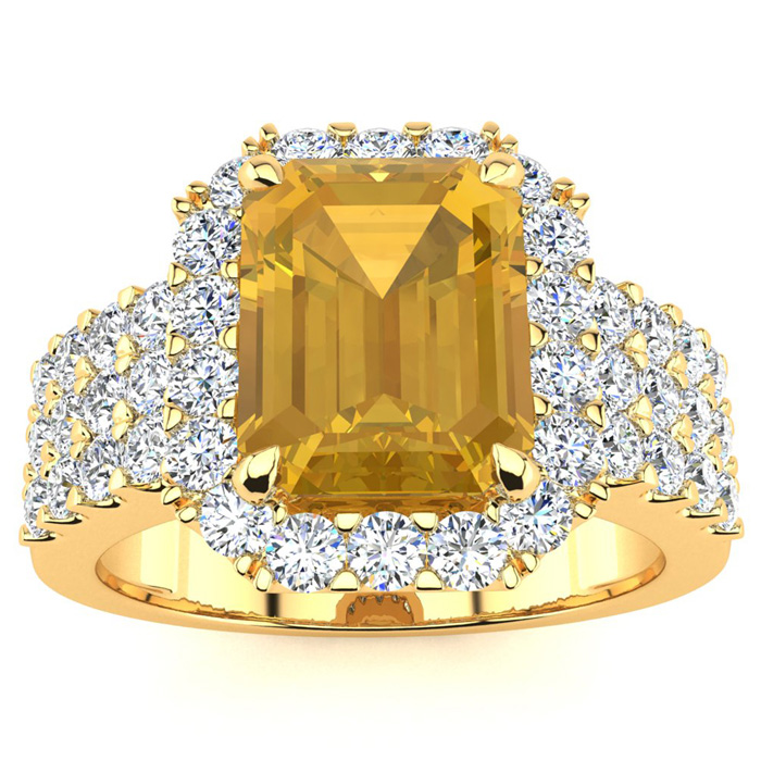3 Carat Citrine and Halo Diamond Ring In 14 Karat Yellow Gold