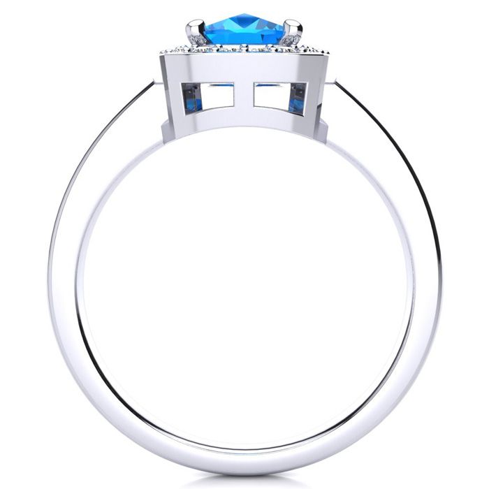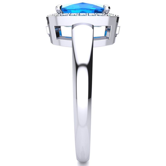 3 Carat Cushion Cut Blue Topaz and Halo Diamond Ring In 14 Karat White Gold
