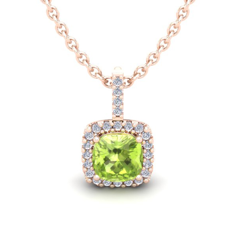 • The design of a cushion shape cut peridot can be squarish or rectangle with soft corners and lines of a cushion or pillow. This shape cut evokes allure and romanticism for many peridot necklace designs.