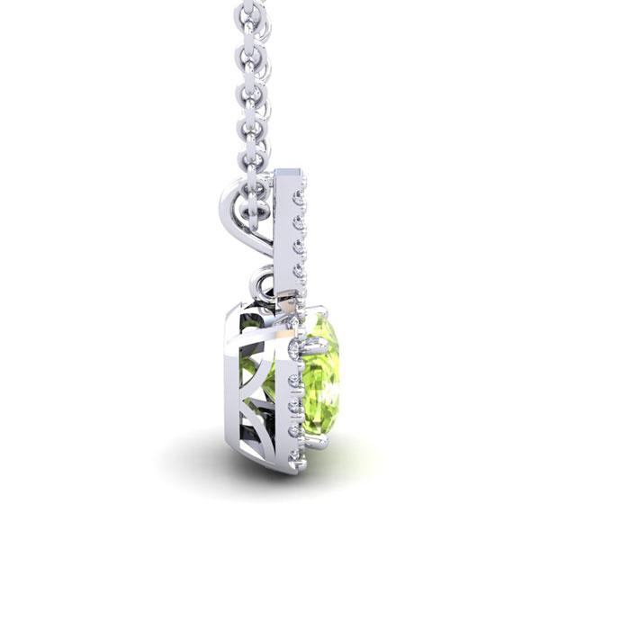 3 Carat Cushion Cut Peridot and Halo Diamond Necklace In 14 Karat White Gold, 18 Inches