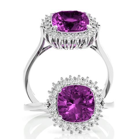 3 Carat Cushion Cut Pink Topaz and Halo Diamond Ring In 14K White Gold