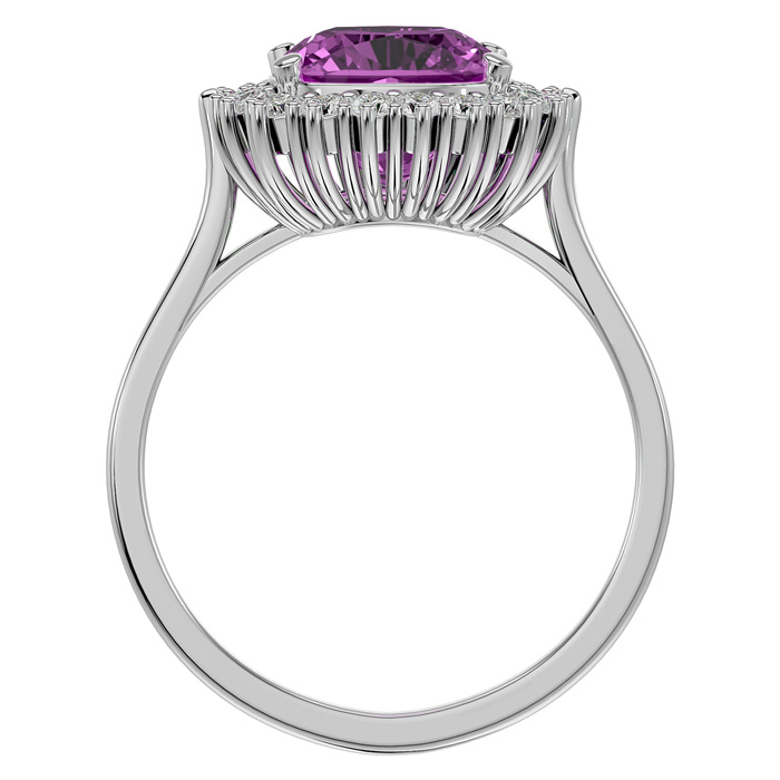 Retrograde Birthstones™ 3 Carat Cushion Cut Pink Topaz and Halo Diamond Ring In 14K White Gold