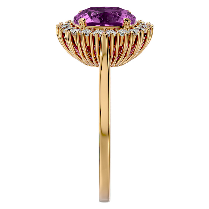 Retrograde Birthstones™ 3 Carat Cushion Cut Pink Topaz and Halo Diamond Ring In 14K Yellow Gold