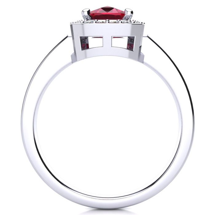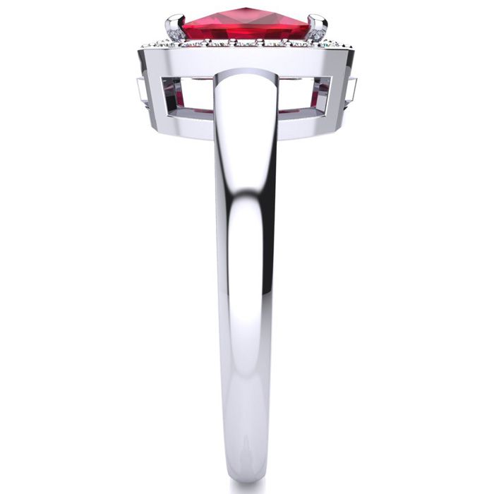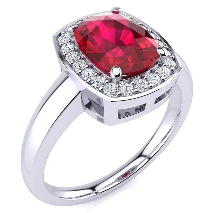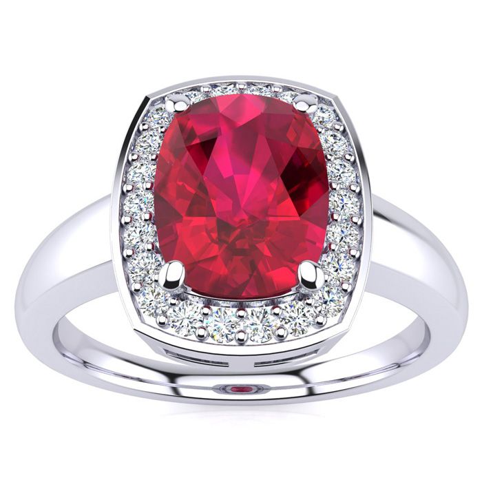 3 Carat Cushion Cut Ruby and Halo Diamond Ring In 14 Karat White Gold