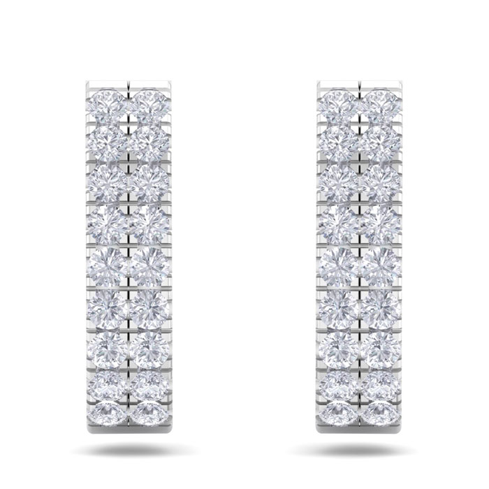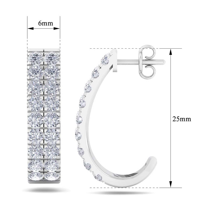 3 Carat Natural Diamond J Hoop Earrings In 14 Karat White Gold. Incredibly Beautiful Important Hoop Earrings With Loads Of Shimmering Diamonds!