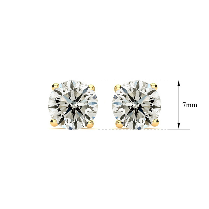3 Carat Natural Diamond Stud Earrings In 14 Karat Yellow Gold