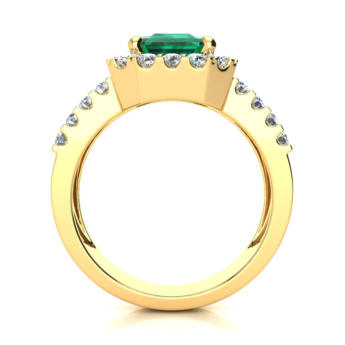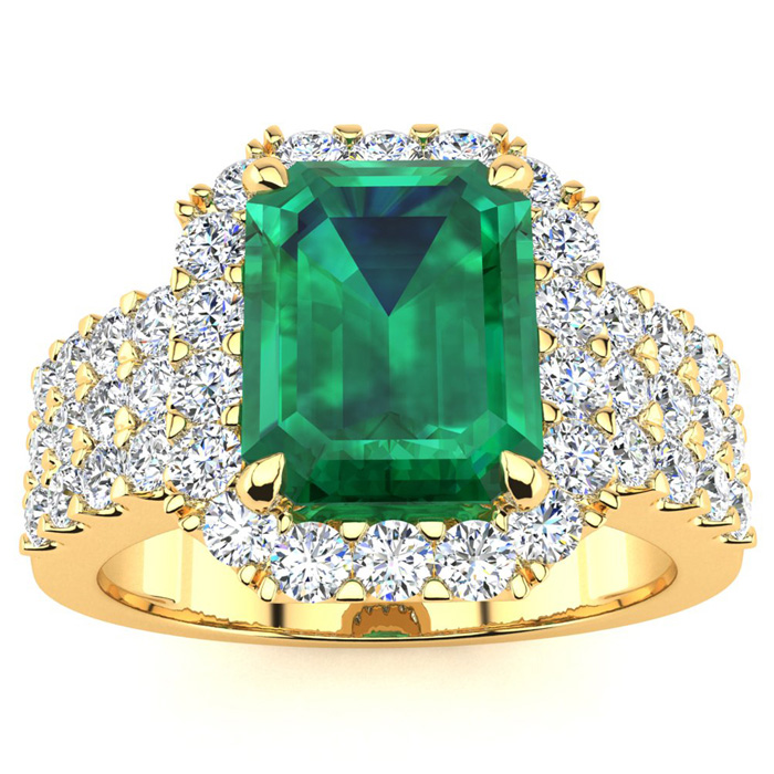 3 Carat Emerald and Halo Diamond Ring In 14 Karat Yellow Gold