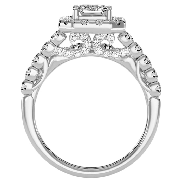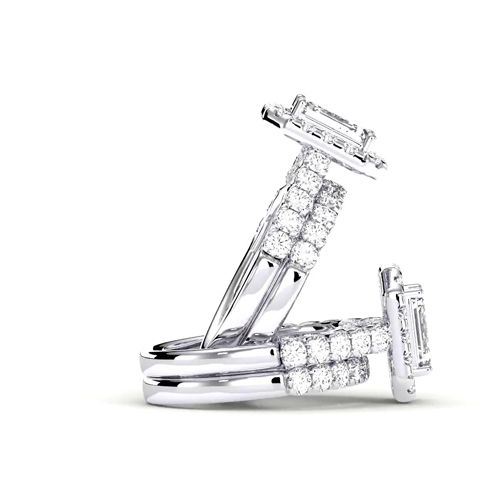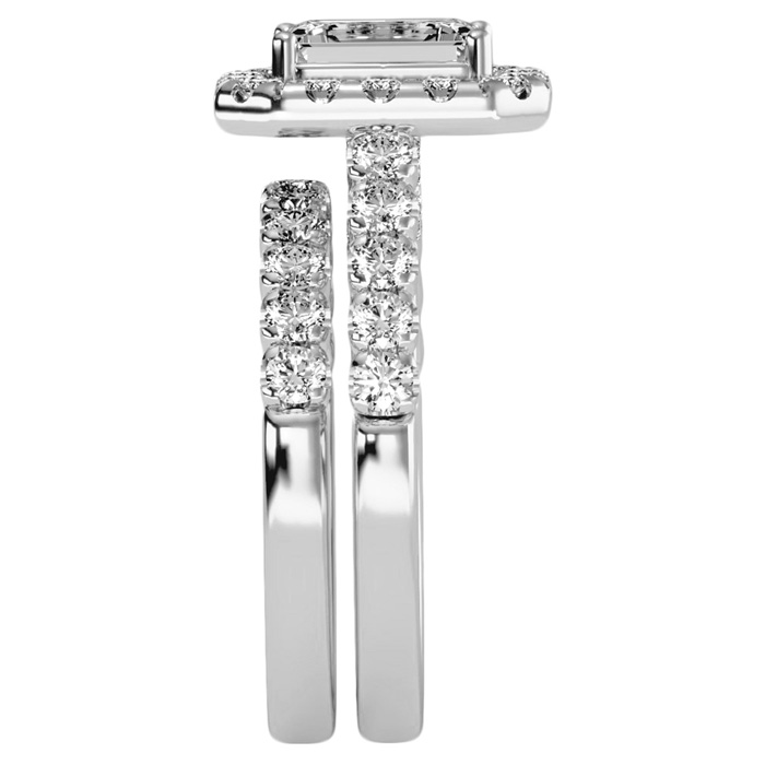 3 Carat Natural Emerald Cut Halo Diamond Bridal Set In 14 Karat White Gold