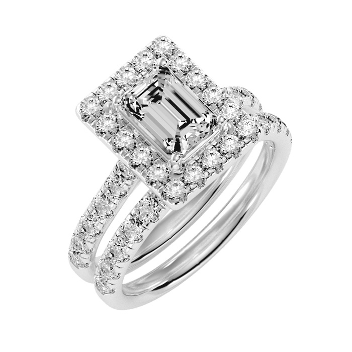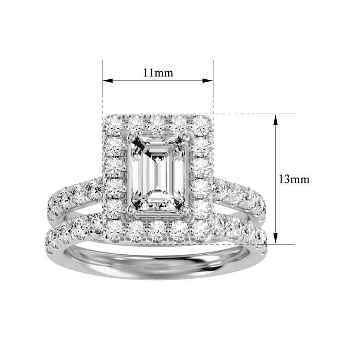 3 Carat Natural Emerald Cut Halo Diamond Bridal Set In 14 Karat White Gold