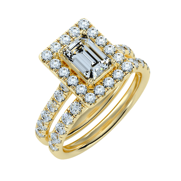 3 Carat Natural Emerald Cut Halo Diamond Bridal Set In 14 Karat Yellow Gold