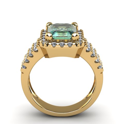 3 Carat Green Amethyst and Halo Diamond Ring In 14 Karat Yellow Gold