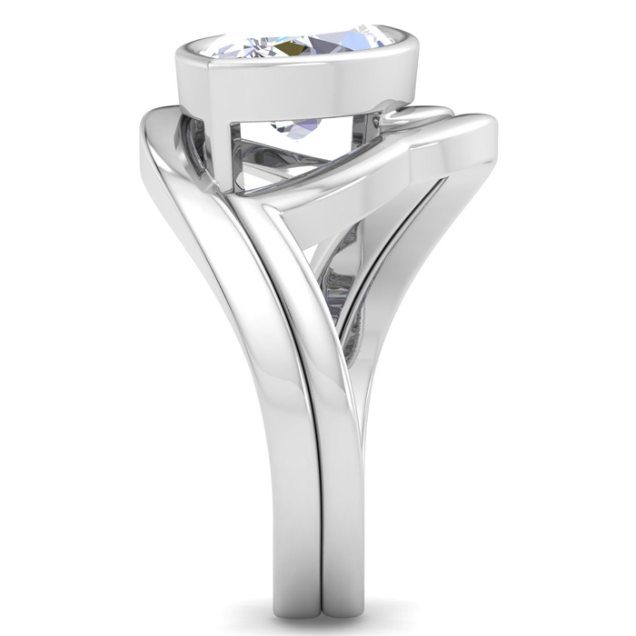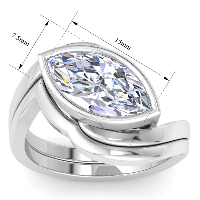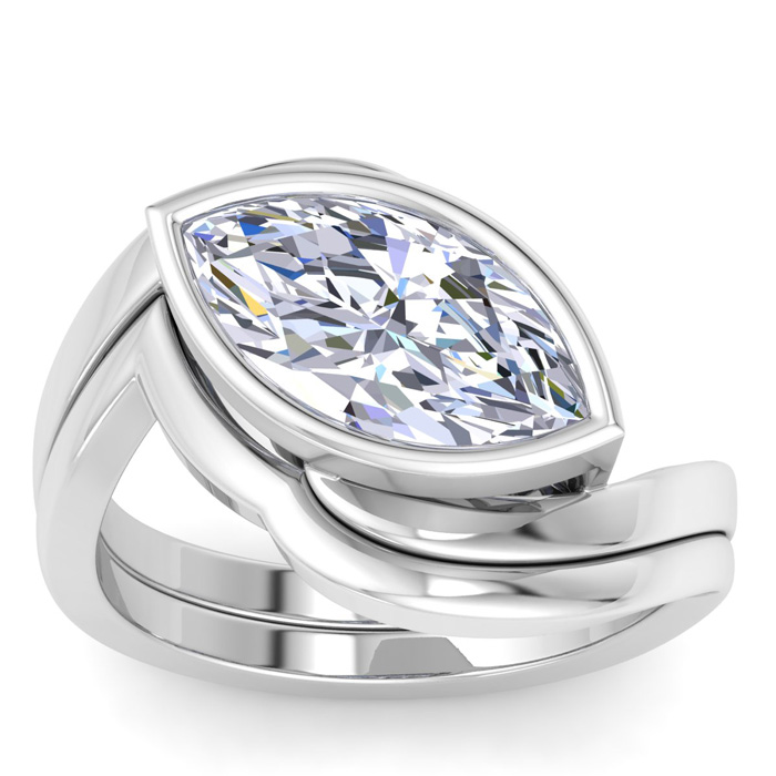 3 Carat Marquise Shape Lab Grown Diamond Ring With Matching Band In 14K White Gold, Solitaire Bezel Setting