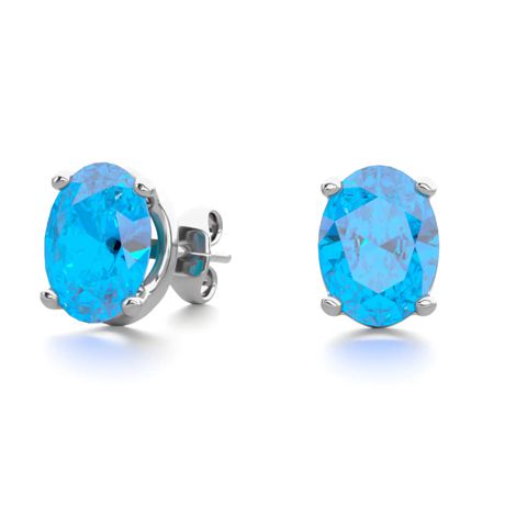 3 Carat Oval Shape Blue Topaz Stud Earrings In Sterling Silver