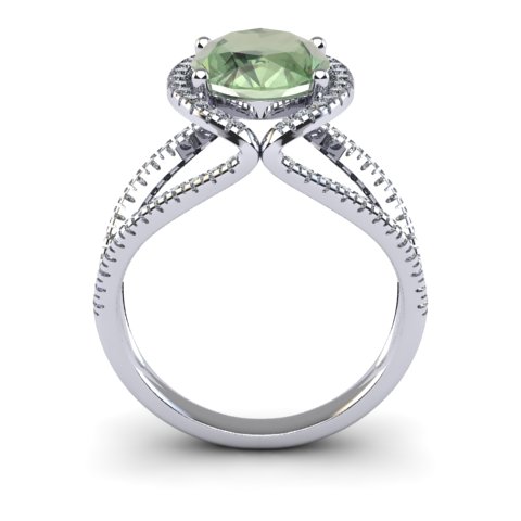 3 Carat Oval Shape Green Amethyst and Halo Diamond Ring In 14 Karat White Gold