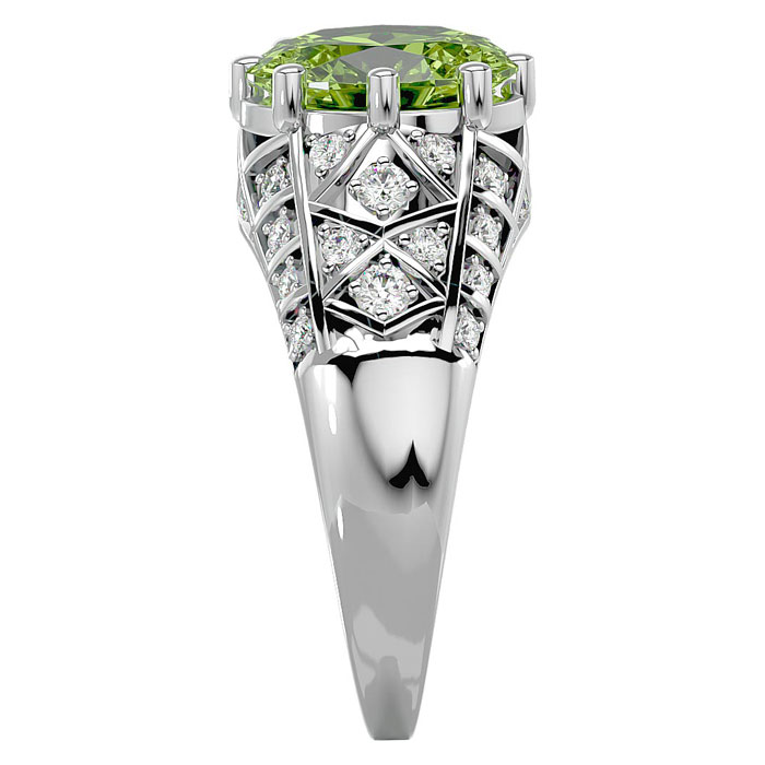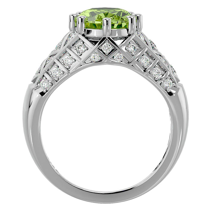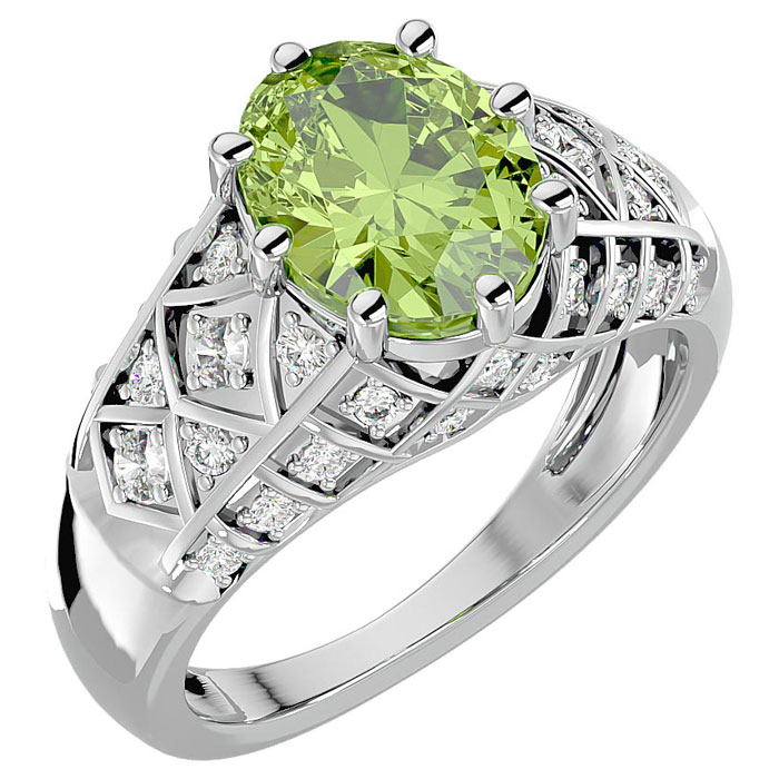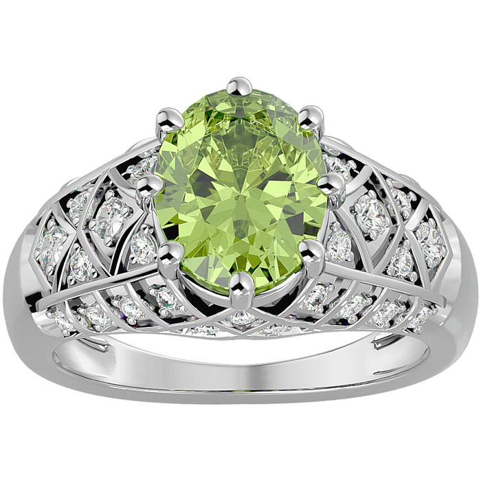 3 Carat Oval Shape Peridot and Diamond Ring In 10 Karat White Gold