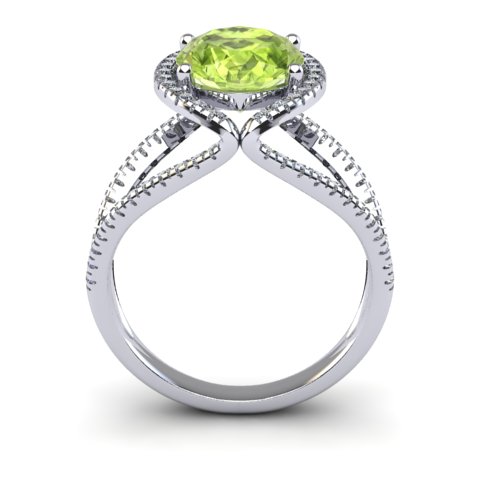 3 Carat Oval Shape Peridot and Halo Diamond Ring In 14 Karat White Gold