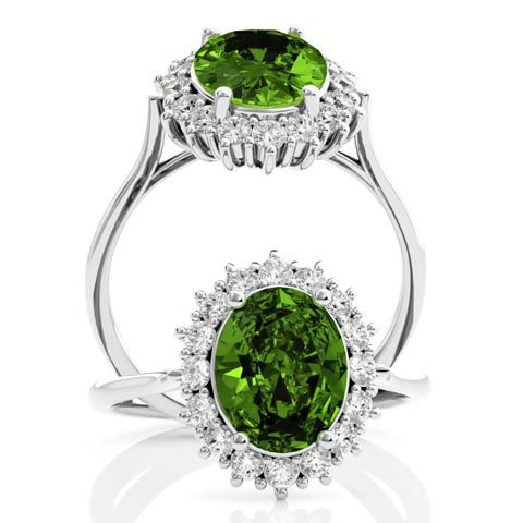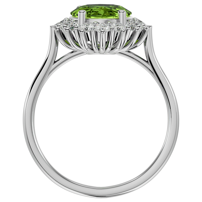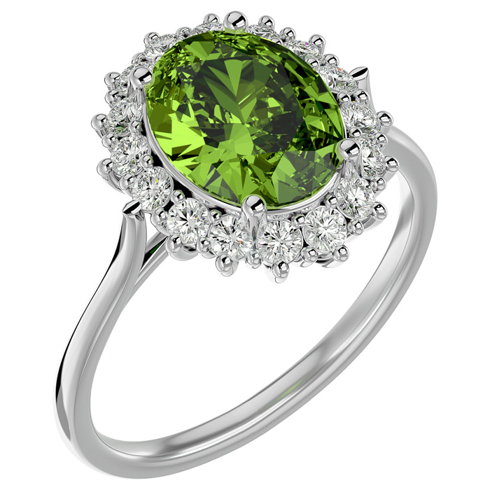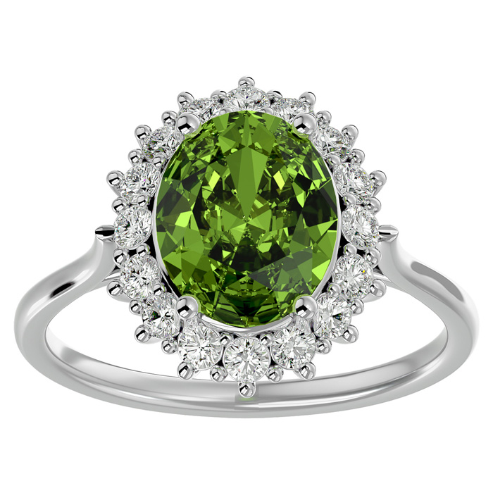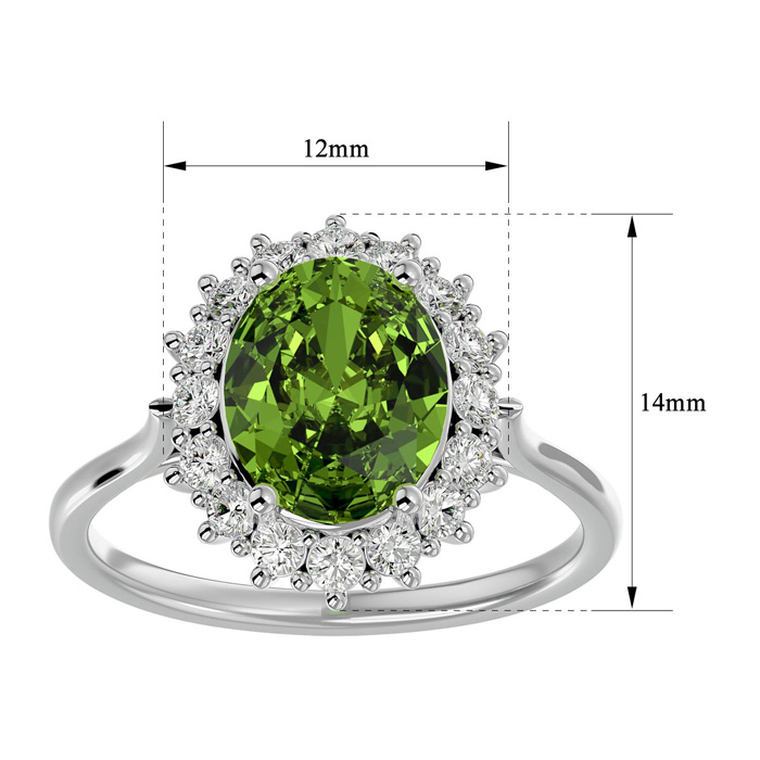 3 Carat Oval Shape Peridot and Halo Diamond Ring In 14 Karat White Gold