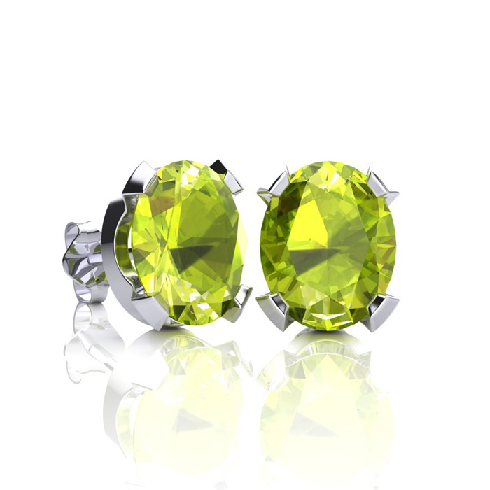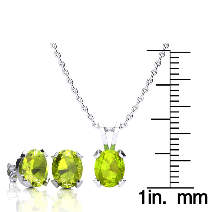 3 Carat Oval Shape Peridot Necklace and Earring Set In Sterling Silver