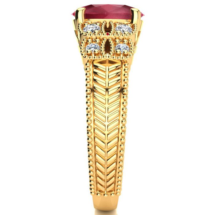 3 Carat Oval Shape Ruby and Diamond Ring In 10 Karat Yellow Gold
