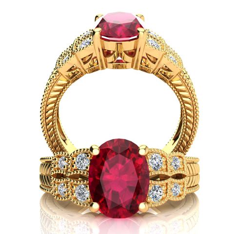3 Carat Oval Shape Ruby and Diamond Ring In 10 Karat Yellow Gold