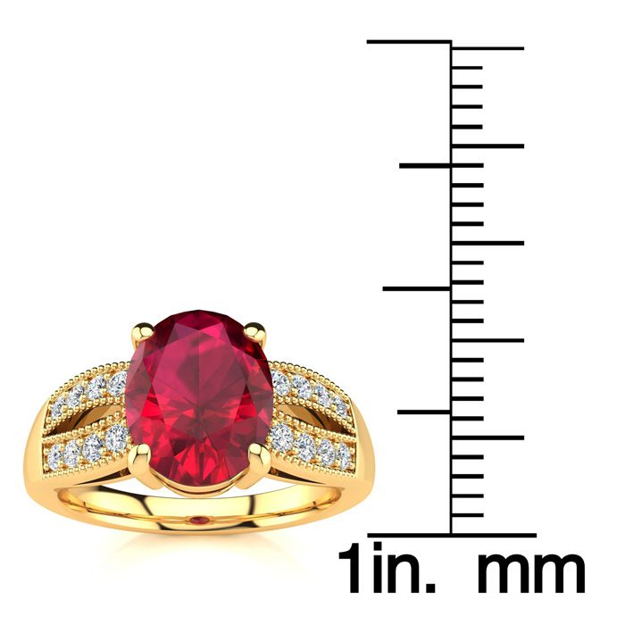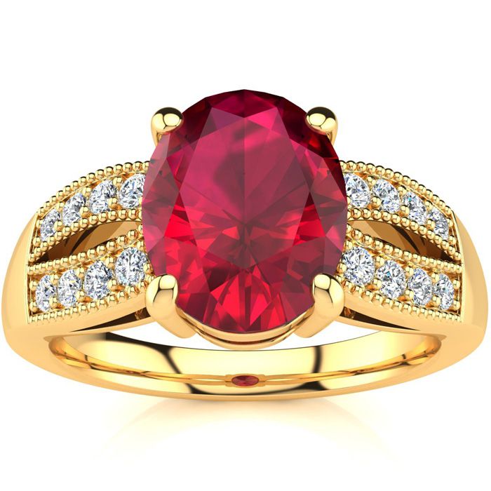 3 Carat Oval Shape Ruby and Diamond Ring In 14 Karat Yellow Gold