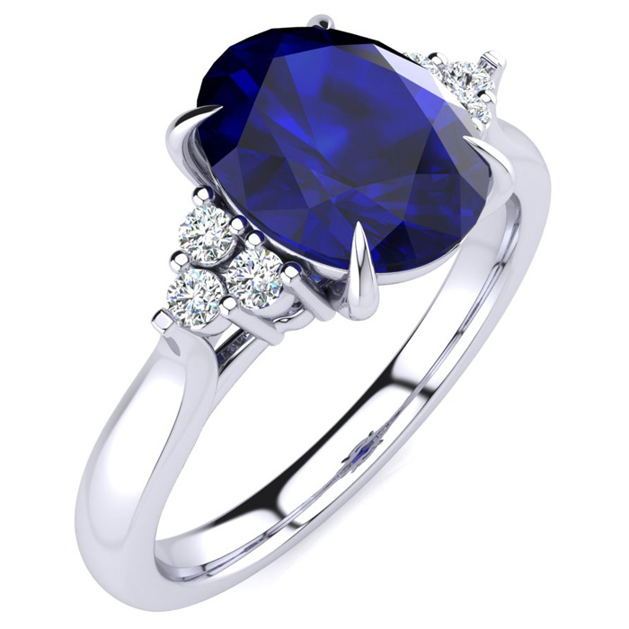 3 Carat Oval Shape Sapphire and Diamond Ring In 14K White Gold