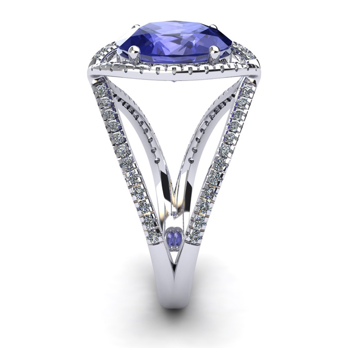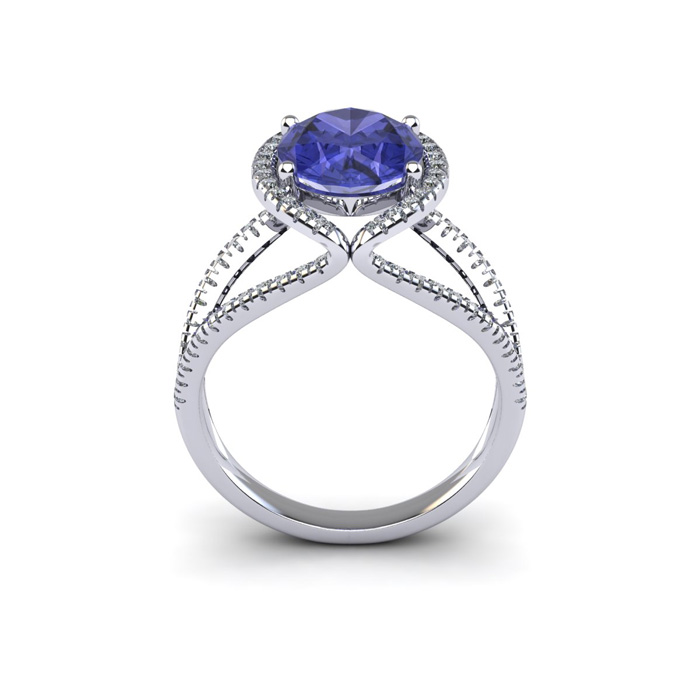 3 Carat Oval Shape Tanzanite and Halo Diamond Ring In 14 Karat White Gold