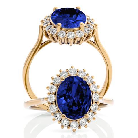 3 Carat Oval Shape Tanzanite and Halo Diamond Ring In 14 Karat Yellow Gold
