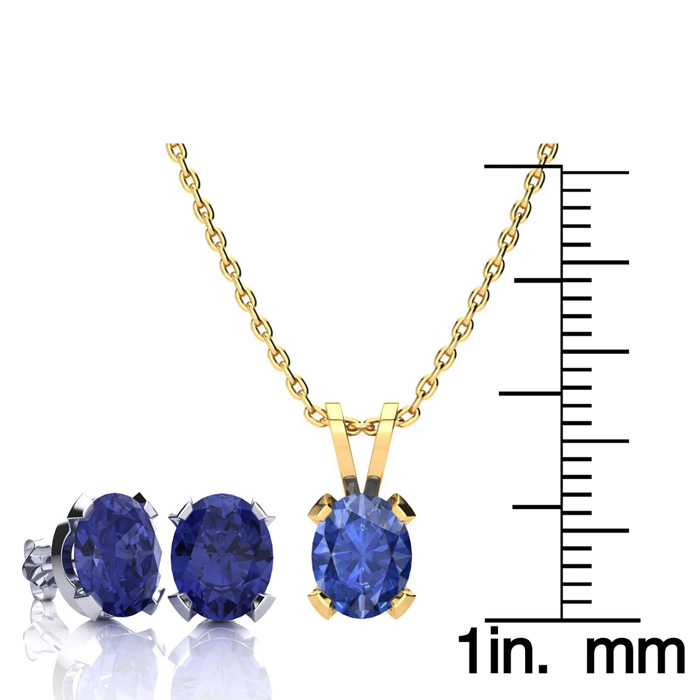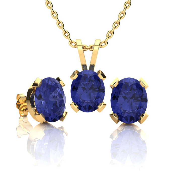 3 Carat Oval Shape Tanzanite Necklace and Earring Set In 14K Yellow Gold Over Sterling Silver