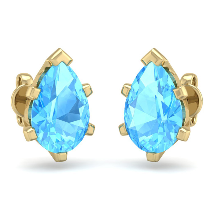 3 Carat Pear Shape Blue Topaz Stud Earrings In 14K Yellow Gold Over Sterling Silver
