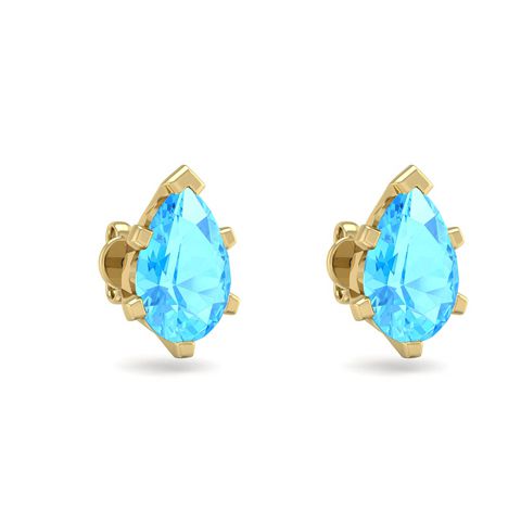 3 Carat Pear Shape Blue Topaz Stud Earrings In 14K Yellow Gold Over Sterling Silver