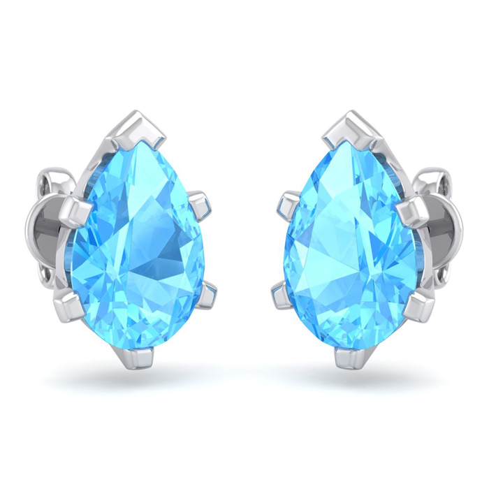 3 Carat Pear Shape Blue Topaz Stud Earrings In Sterling Silver