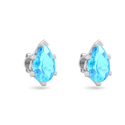 3 Carat Pear Shape Blue Topaz Stud Earrings In Sterling Silver