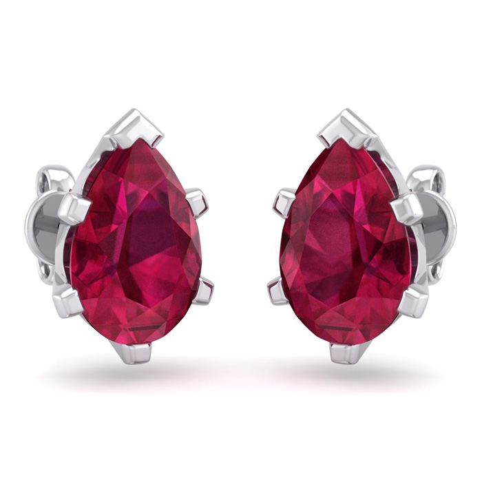 3 Carat Pear Shape Ruby Stud Earrings In Sterling Silver