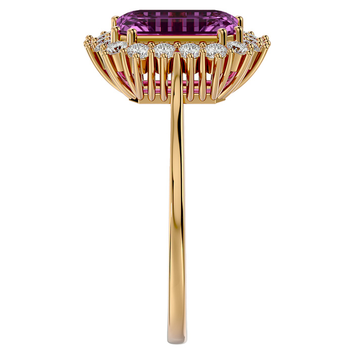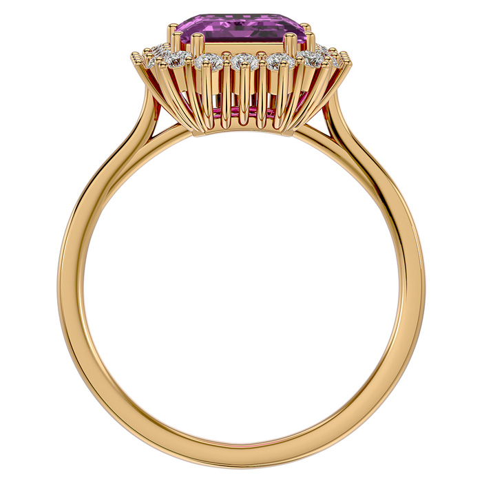 Retrograde Birthstones™ 3 Carat Pink Topaz and Halo Diamond Ring In 14K Yellow Gold